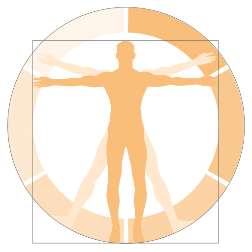 Die Proportionsstudie von Leonardo da Vinci anhand des Vitruvianischen Mannes verdeutlicht in wunderbarer Weise den „Goldenen Schnitt“ unseres Lebens:
